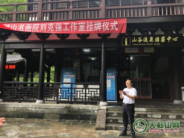近日,天柱山書(shū)畫(huà)院“劉克強(qiáng)工作室”掛牌儀式在山谷流泉文化園隆重舉行。此次活動(dòng)由天柱山管委會(huì)、潛山市文聯(lián)聯(lián)合舉辦,天柱山書(shū)畫(huà)院、天柱山畫(huà)家村美術(shù)館具體承辦。天柱山管委會(huì)、潛山市文聯(lián)、天柱山鎮(zhèn)、天柱山旅游公司等相關(guān)單位負(fù)責(zé)人;國(guó)內(nèi)知名畫(huà)家劉克強(qiáng)、湯敏杰、余國(guó)友;國(guó)家注冊(cè)拍賣師李樹(shù)友以及來(lái)自全國(guó)各地的企業(yè)家,本地書(shū)畫(huà)愛(ài)好者,圈內(nèi)好友等幾十人參加了揭牌儀式。