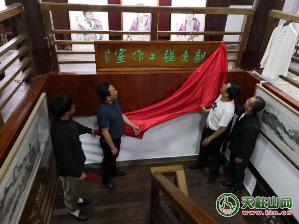 最后,在全體嘉賓的共同見(jiàn)證下,市委常委、天柱山管委會(huì)副主任涂高生、潛山市文聯(lián)主席韓久安、著名畫(huà)家劉克強(qiáng)、天柱山書(shū)畫(huà)院執(zhí)行院長(zhǎng)何承熙共同為“劉克強(qiáng)工作室”揭牌。