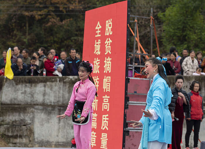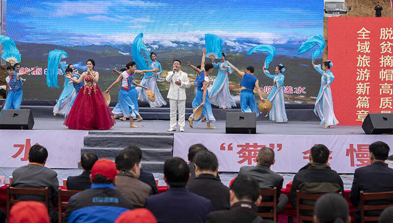 ? ? 開幕式由中共槎水鎮(zhèn)委員會、槎水鎮(zhèn)人民政府,潛山市文化委、市市監(jiān)局、市扶貧辦、市旅發(fā)委主辦。《又是一年菊花香》、《美麗槎水 我的故鄉(xiāng)》、《雛菊花》、《 物華天寶 》等歌、舞、情景劇充分展現(xiàn)槎水鄉(xiāng)村生活風情、自然與文化魅力、山區(qū)群眾奮斗在新時代以及經(jīng)濟發(fā)展成就。一個又一個接地氣的節(jié)目,讓觀眾們看了十分過癮,掌聲不斷。
