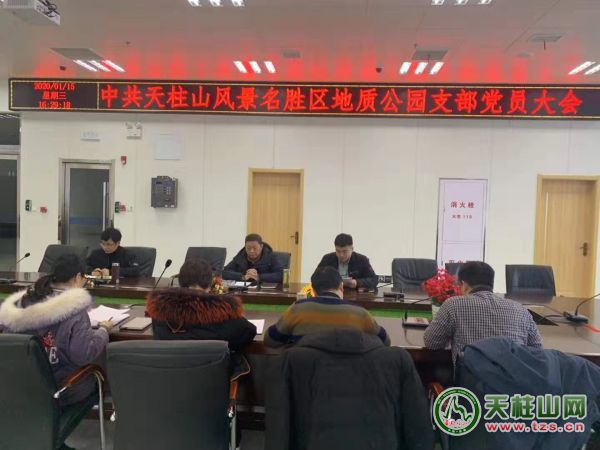 2020年1月15日,中共天柱山風景名勝區(qū)地質公園支部召開黨員大會,支部全體黨員參加會議,風景區(qū)黨委委員、天管會副主任王晨東蒞臨會議指導。