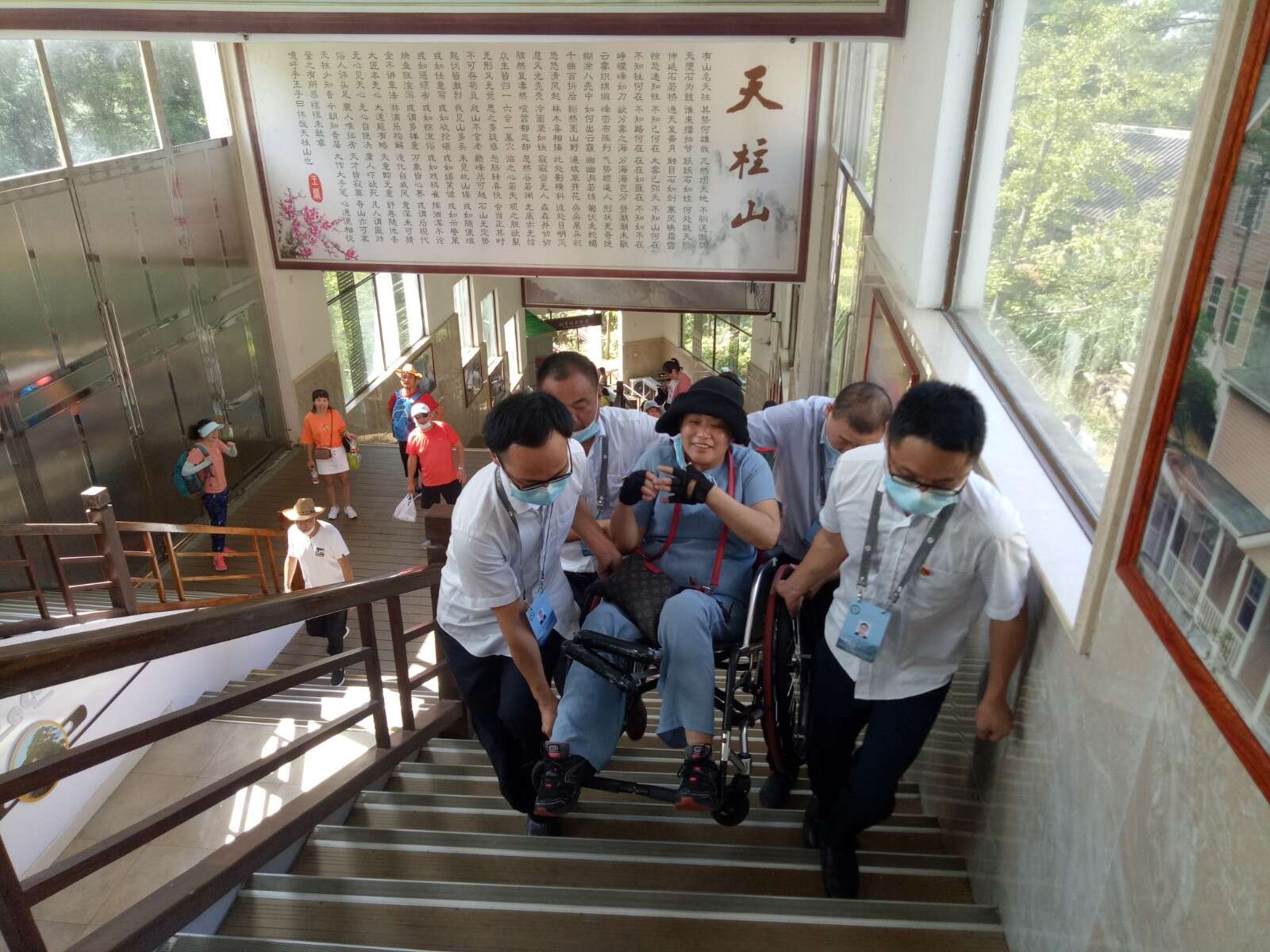 “天柱山很美,景區(qū)服務很周到,為索道工作人員的貼心服務點贊”。8月16日,天柱山風景區(qū)迎來了一批特殊的游客,為了讓這批殘疾人士一睹天柱山的美麗風景,大龍窩索道和執(zhí)法大隊一中隊及時抽調(diào)黨員骨干,組成10余人的愛心志愿者分隊,全程陪同一對一的為他們貼心服務,志愿者們采取了背、抱、扶的辦法,為殘疾人士實現(xiàn)了無障礙通行,檢票口開通了綠色檢票通道,站臺服務細致入微,使得這批特殊的游客感受到了來自景區(qū)的溫暖,圓了他們的登山夢,大龍窩索道正在用實際行動踐行著“大愛天柱,情系天下”的服務宗旨。(文圖/李平)