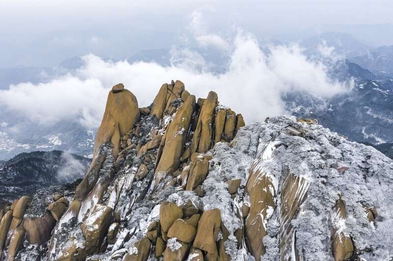 受冷空氣影響,2020年12月14號(hào),安徽潛山天柱山迎來降雪,漫山遍野,銀裝素裹,宛如冰雪夢幻世界。