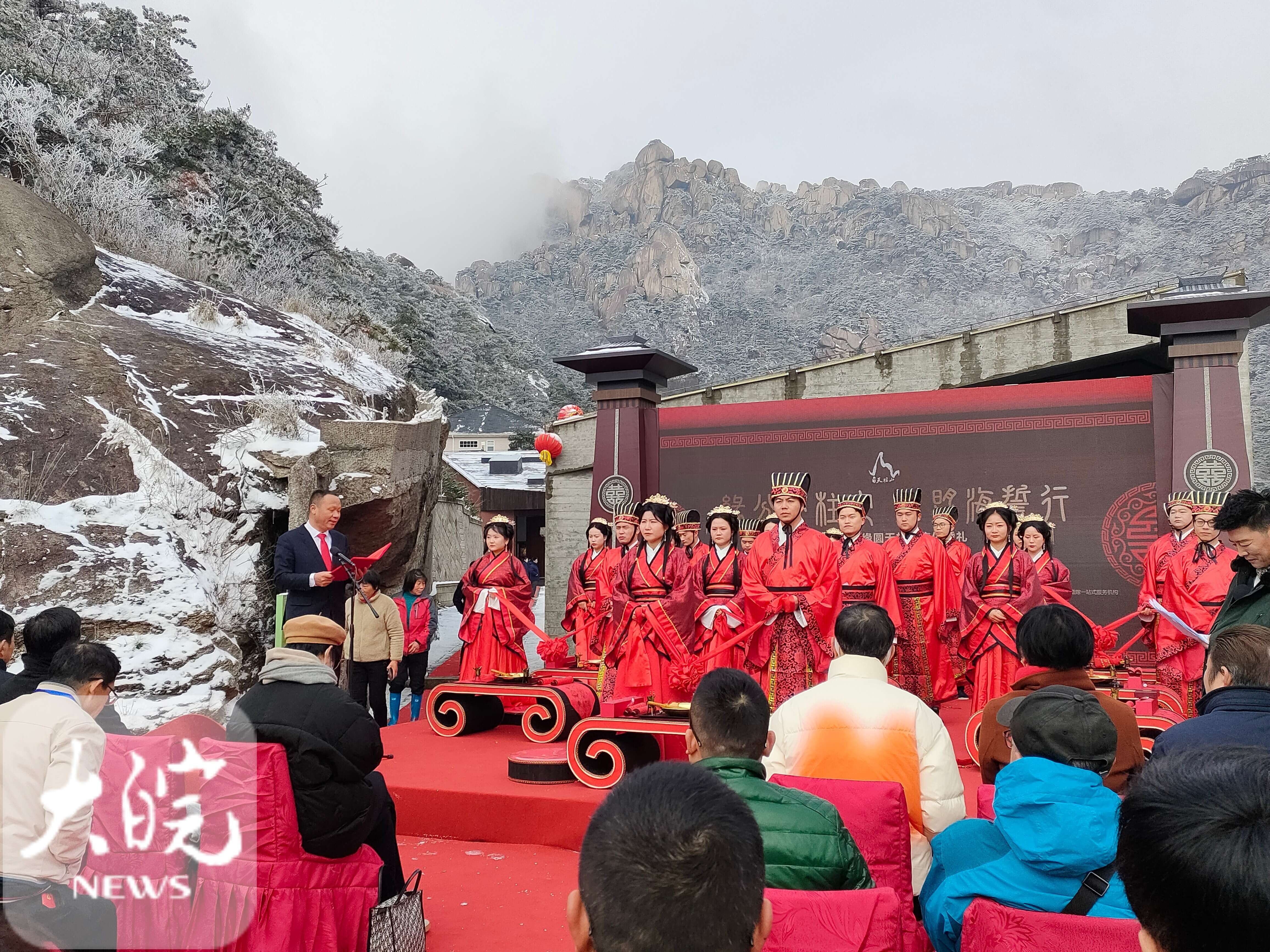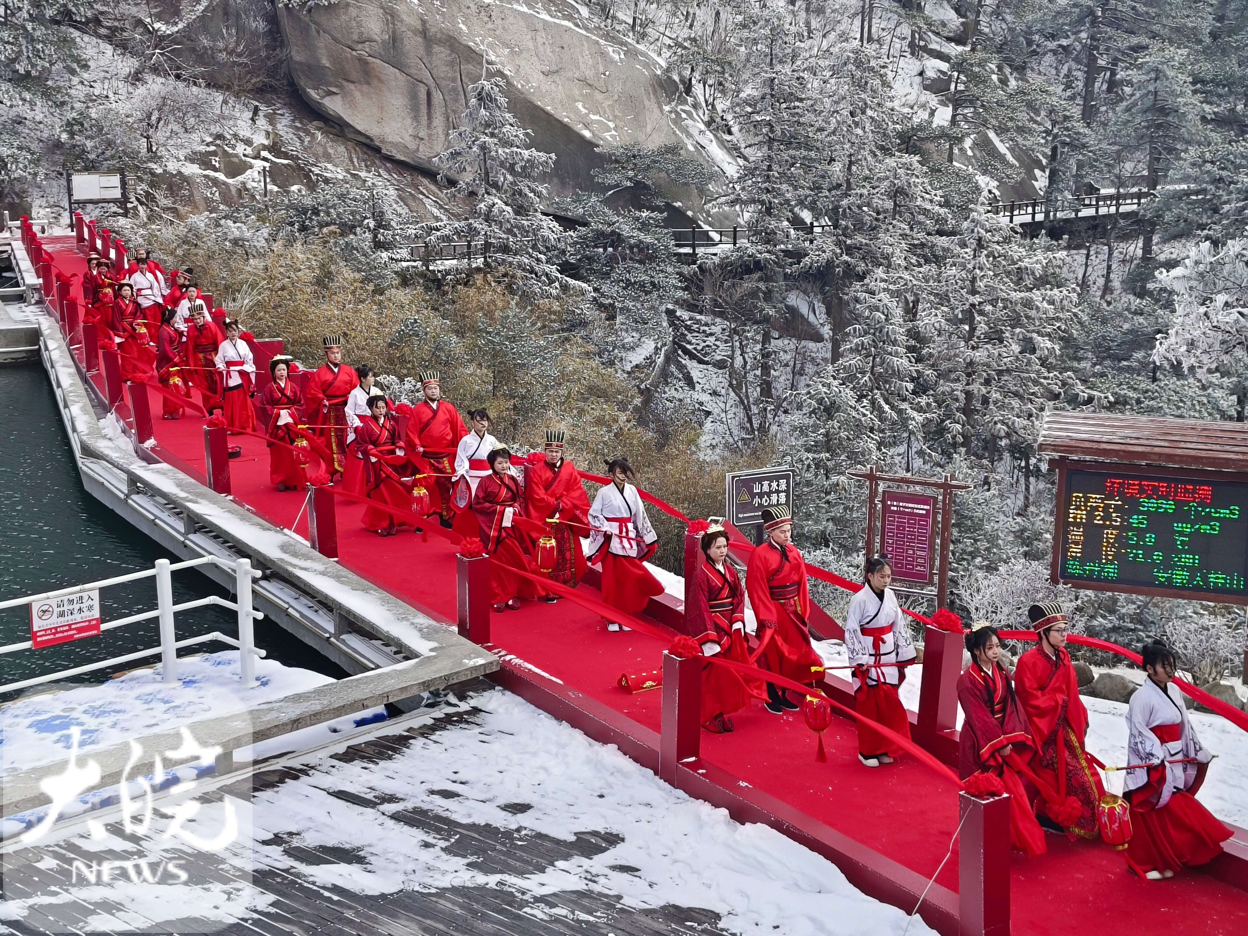 大皖新聞訊 ? ?2月13日-14日,由安徽天柱山風景名勝區(qū)管委會、潛山市文化旅游體育局主辦,安徽省攝影行業(yè)協(xié)會、天柱山旅游發(fā)展有限公司承辦的“緣份天柱定 山盟海誓行”首屆天柱山“山盟海誓”婚旅文化節(jié)成功舉辦。來自上海、北京、海南、湖北、安徽、杭州攝影行業(yè)協(xié)會、婚紗攝影企業(yè)負責人和全省各地的10對新人相聚在美麗的天柱山,來了一場漫游愛情之旅。