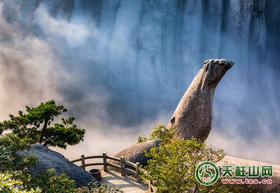 仰慕天柱山,首先是仰慕天柱山的尊嚴(yán)。這是亙古洪荒的大自然杰作,有世上最大一簇石峰花,雄武地綻開在天柱山頂。石峰花呈爆發(fā)式怒放狀,不知是在哪個(gè)春天,不知是被哪一夜忽然吹來的春風(fēng)吹醒,于是在一陣天崩地裂之后,便留下了永恒。唯有牡丹真國色,九州最美天柱花,偉哉,幸哉,大自然格外開恩天柱山!